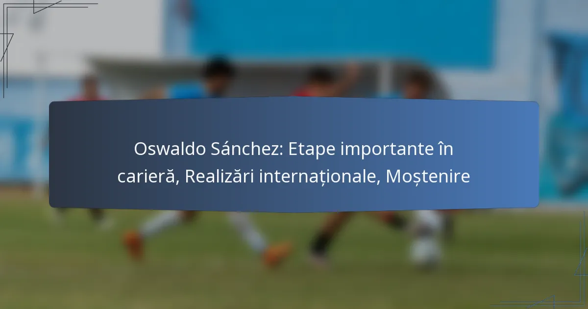 Oswaldo Sánchez este un portar mexican celebru, cunoscut pentru contribuțiile sale semnificative atât în fotbalul de club, cât și în cel internațional. Reperele carierei sale includ performanțe impresionante în ligile interne, numeroase selecții internaționale și o tranziție de succes în antrenorat.