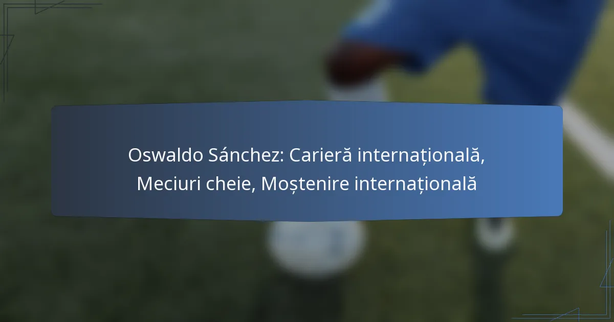 Moștenirea internațională a lui Oswaldo Sánchez este marcată de contribuțiile sale semnificative la echipa națională de fotbal a Mexicului, în special în timpul turneelor majore. Abilitățile sale excepționale ca portar și calitățile de lider au inspirat generații viitoare, consolidându-i statutul de figură venerată în istoria fotbalului mexican.