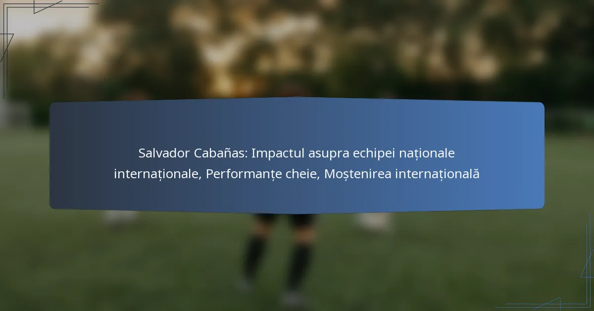Salvador Cabañas este amintit ca o figură semnificativă în fotbalul internațional, în special pentru contribuțiile sale la echipa națională a Mexicului. Performanțele sale pe teren și impactul său cultural au lăsat o moștenire durabilă care rezonează cu fanii și jucătorii aspiranți deopotrivă.